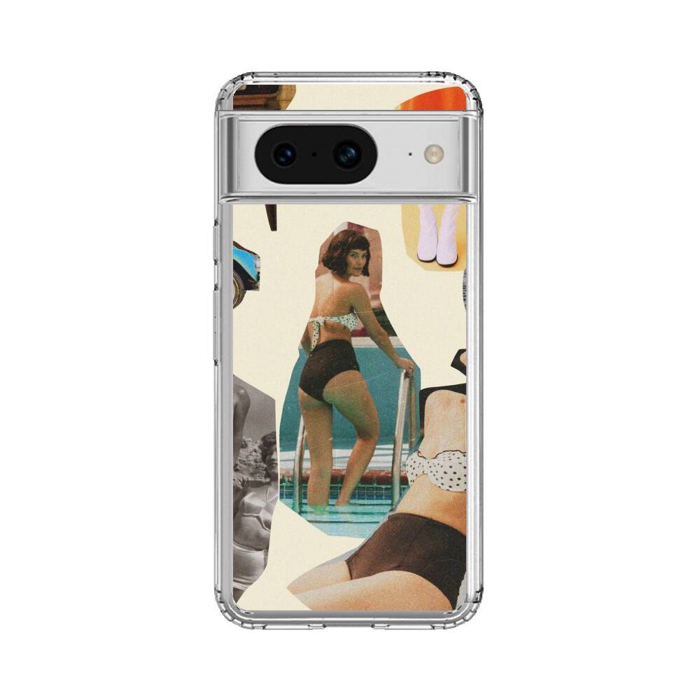Retro Damen Collage Google Pixel 8 Silikon Hülle● Sehr robust & langlebig