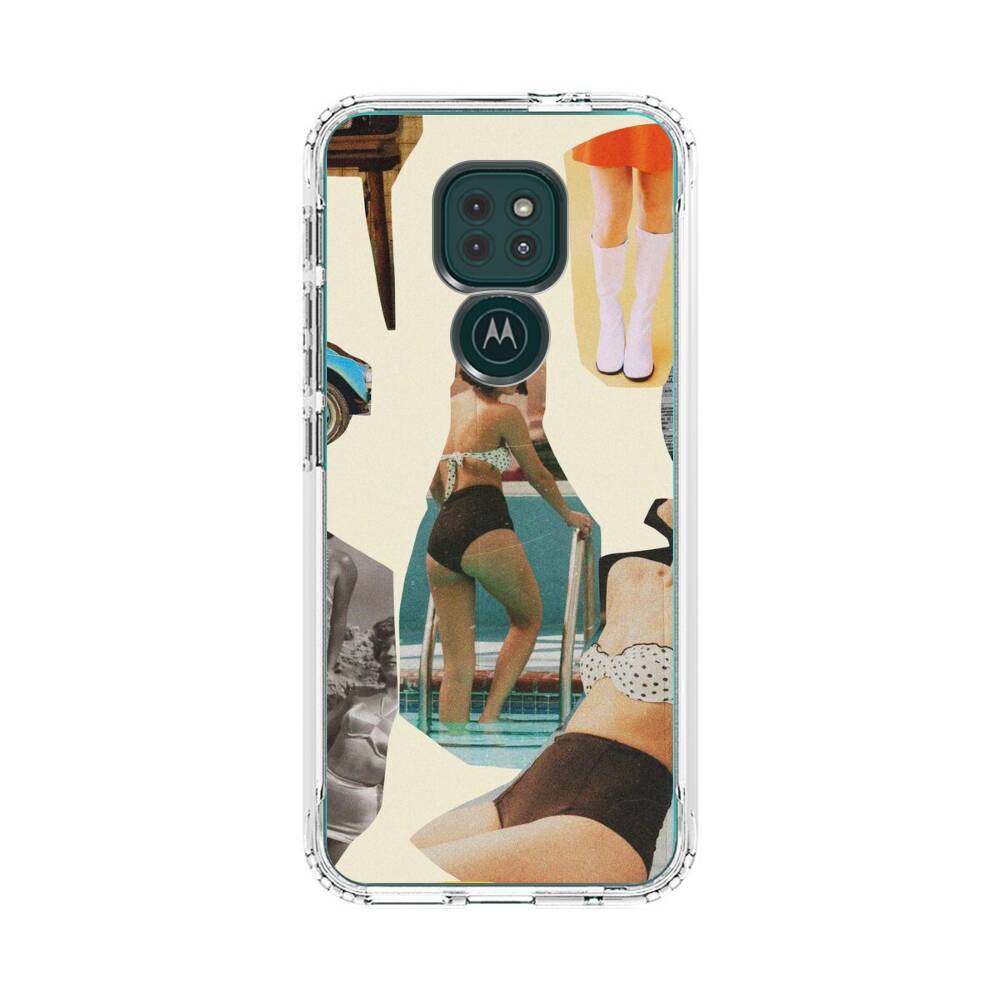 Retro Damen Collage Motorola Moto G9 Play Silikon Hülle● Sehr robust & langlebig