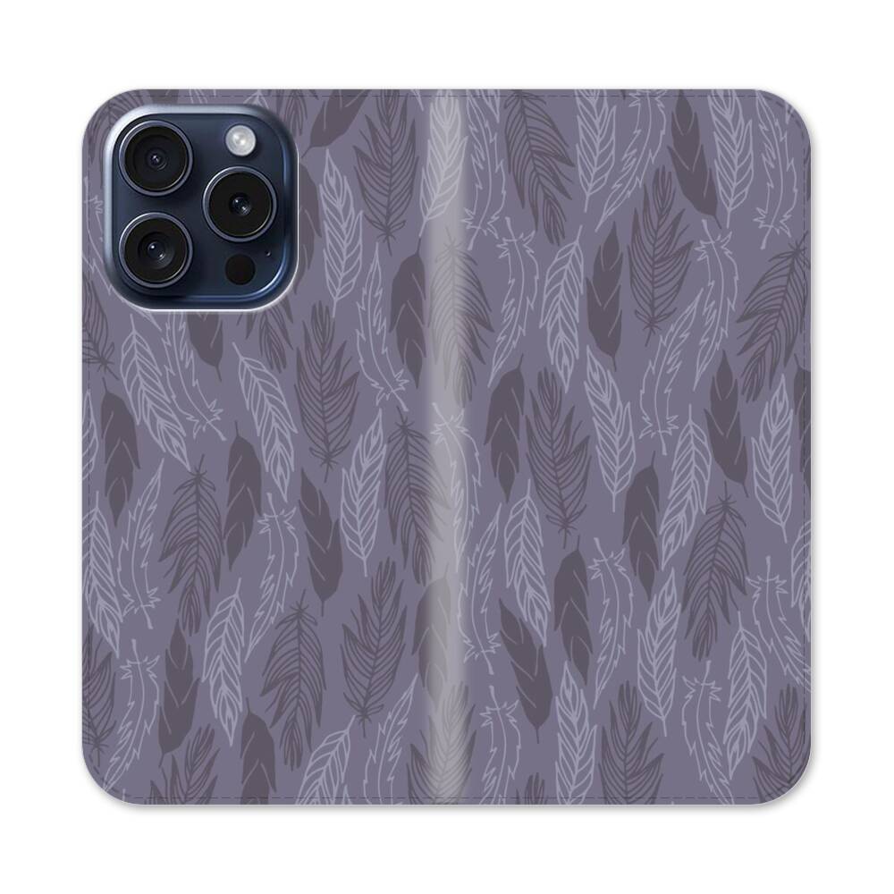 Graue Blätter Apple iPhone 15 Pro Flip Case● Seitlich klappbar