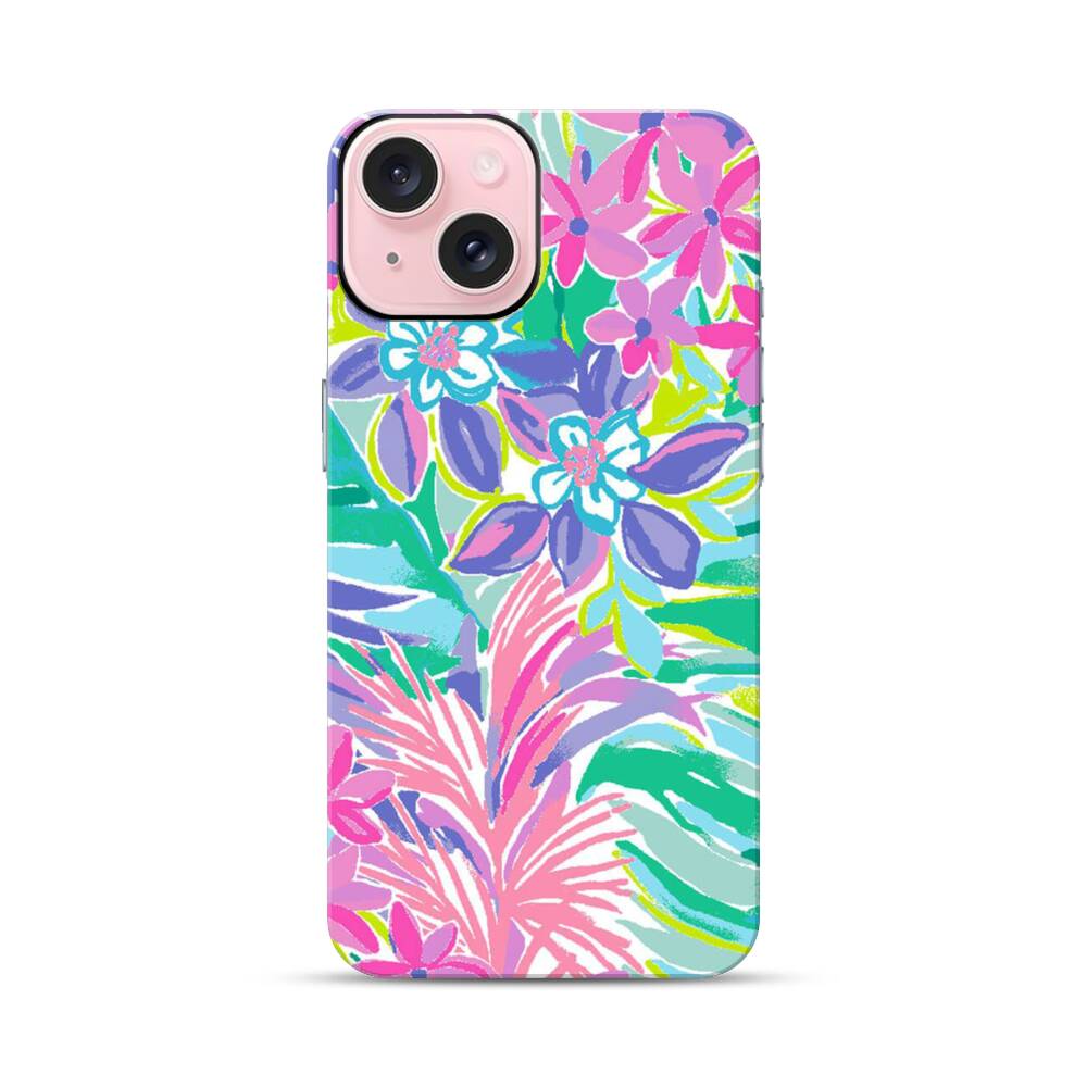 Lila Blumen Malerei Apple iPhone 15 Hybrid Case● Rundum bedruckbar
