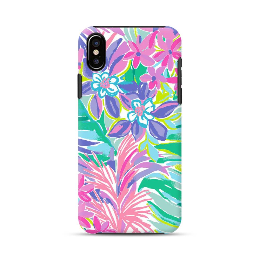 Lila Blumen Malerei iPhone XS Hybrid Hülle● Rundum bedruckbar