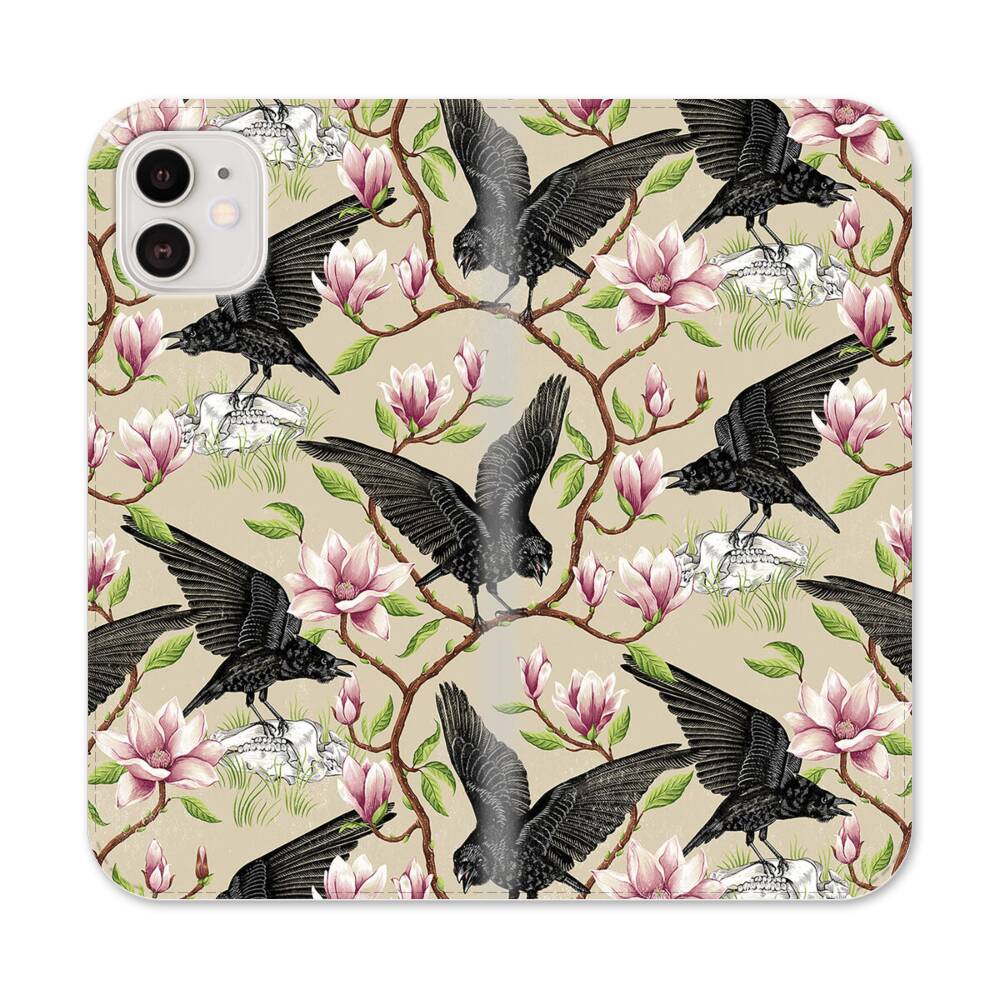 Krähen und Magnolien Apple iPhone 12 Flip Case● Seitlich klappbar