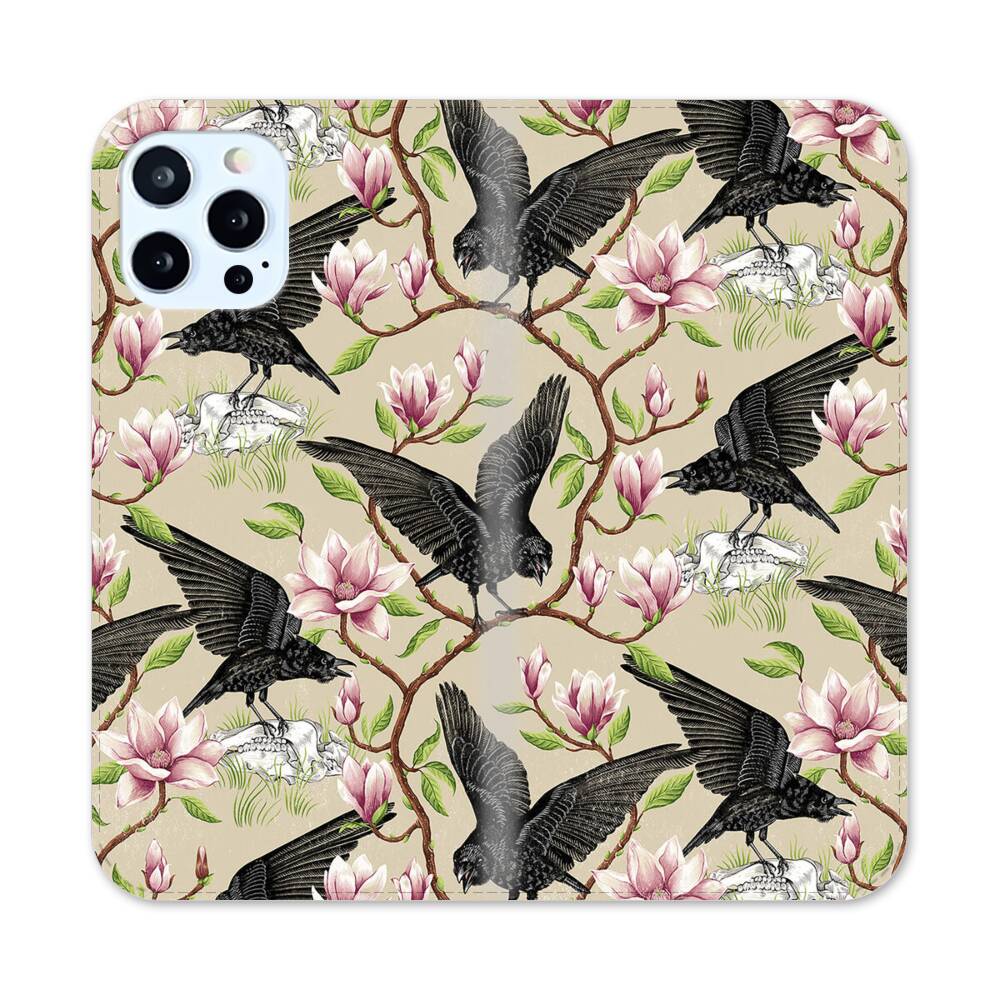 Krähen und Magnolien Apple iPhone 12 Pro Flip Case● Seitlich klappbar