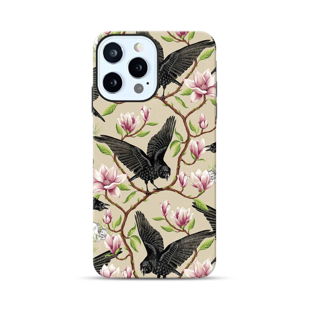 Krähen und Magnolien Apple iPhone 12 Pro Max Hybrid Case● Rundum bedruckbar