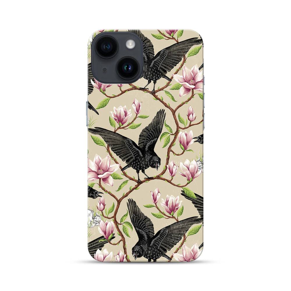Krähen und Magnolien Apple iPhone 14 Hülle● Rundum bedruckbar