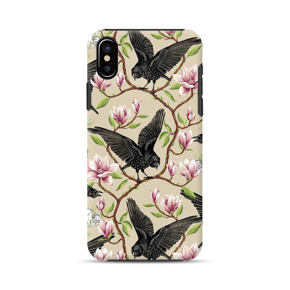 Krähen und Magnolien iPhone X Hybrid Hülle● Rundum bedruckbar