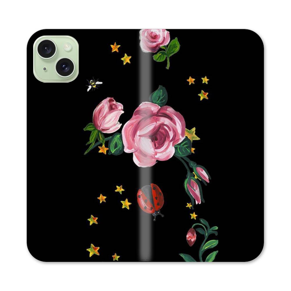 Rosen in der Sternenhimmel Apple iPhone 15 Plus Flip Case● Seitlich klappbar