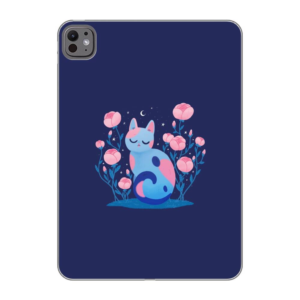 Comic Katze mit Pfingstrose Apple iPad Pro 11 (2025/2024) Silikon Hülle● Sehr robust & langlebig