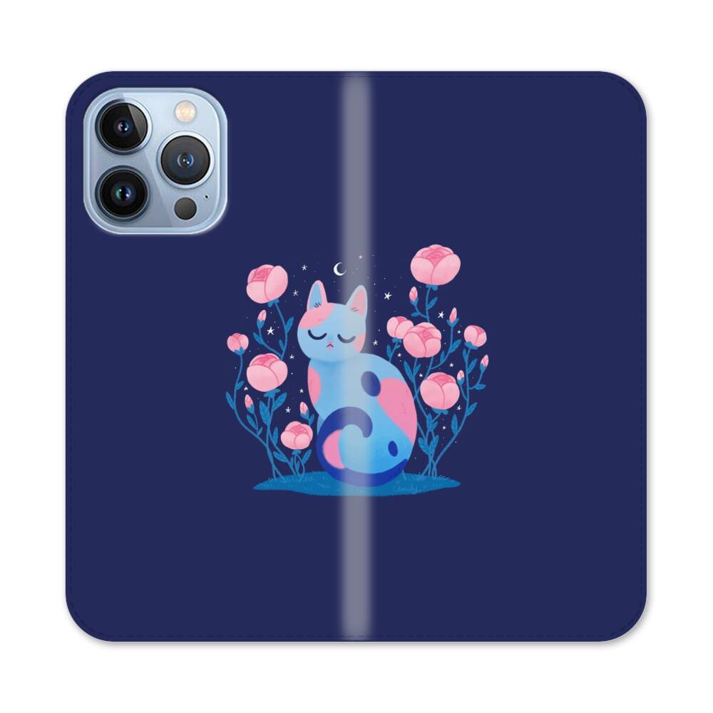 Comic Katze mit Pfingstrose Apple iPhone 13 Pro Flip Case● Seitlich klappbar