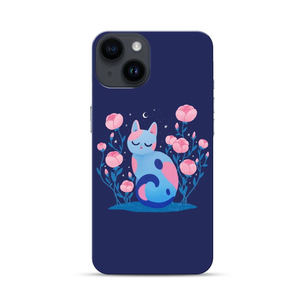 Comic Katze mit Pfingstrose Apple iPhone 14 Hülle● Rundum bedruckbar