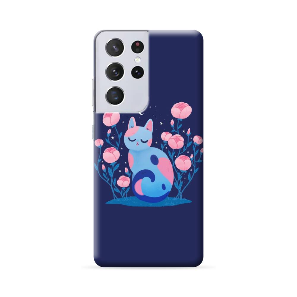 Comic Katze mit Pfingstrose Samsung Galaxy S22 Ultra Hülle● Rundum bedruckbar