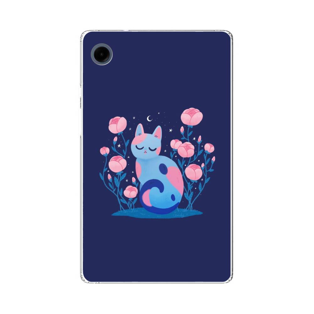 Comic Katze mit Pfingstrose Samsung Galaxy Tab A9 Silikon Hülle● Sehr robust & langlebig