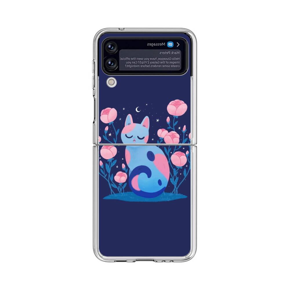 Comic Katze mit Pfingstrose Samsung Galaxy Z Flip 3 5G Silikon Hülle● Sehr robust & langlebig