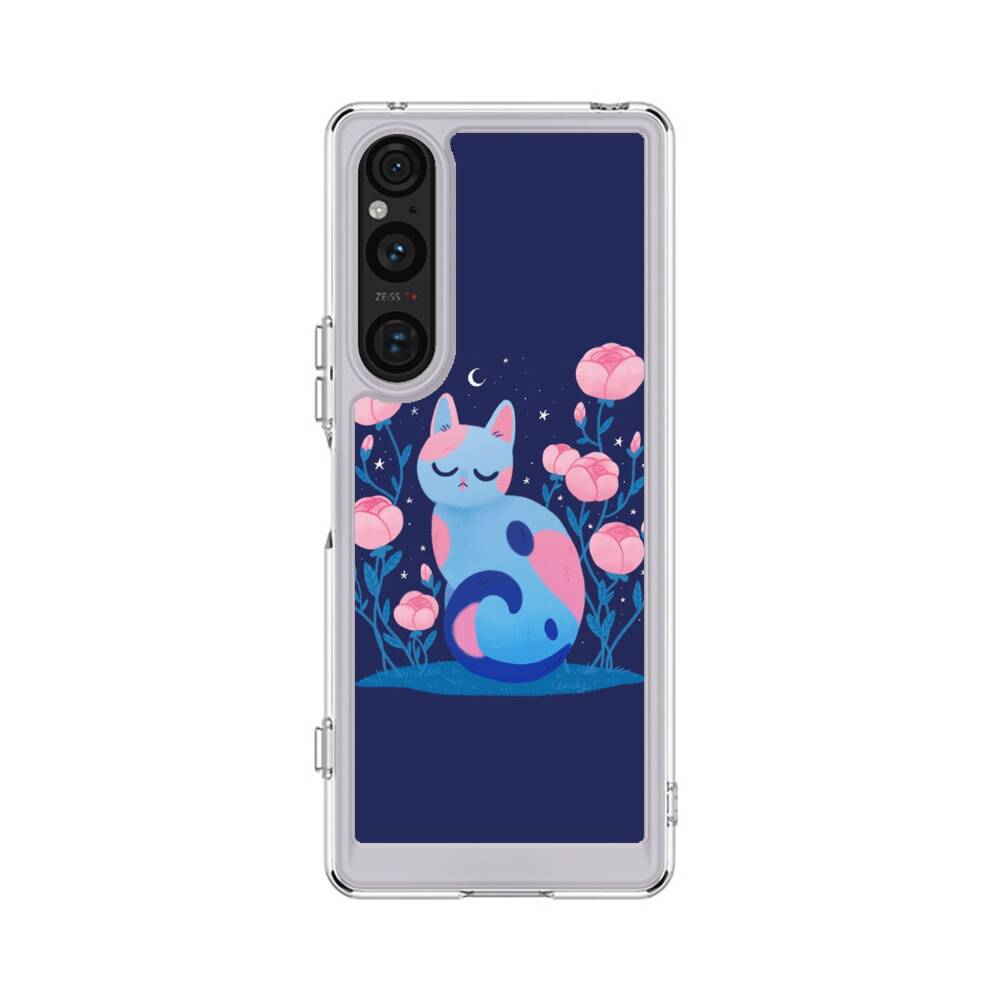 Comic Katze mit Pfingstrose Sony Xperia 1 V Silikon Hülle● Sehr robust & langlebig