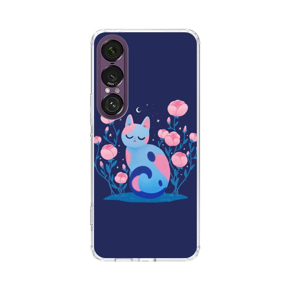 Comic Katze mit Pfingstrose Sony Xperia 1 VII Silikon Hülle● Sehr robust & langlebig