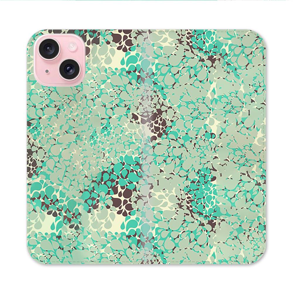 Grünes Kunst Design Apple iPhone 15 Flip Case● Seitlich klappbar