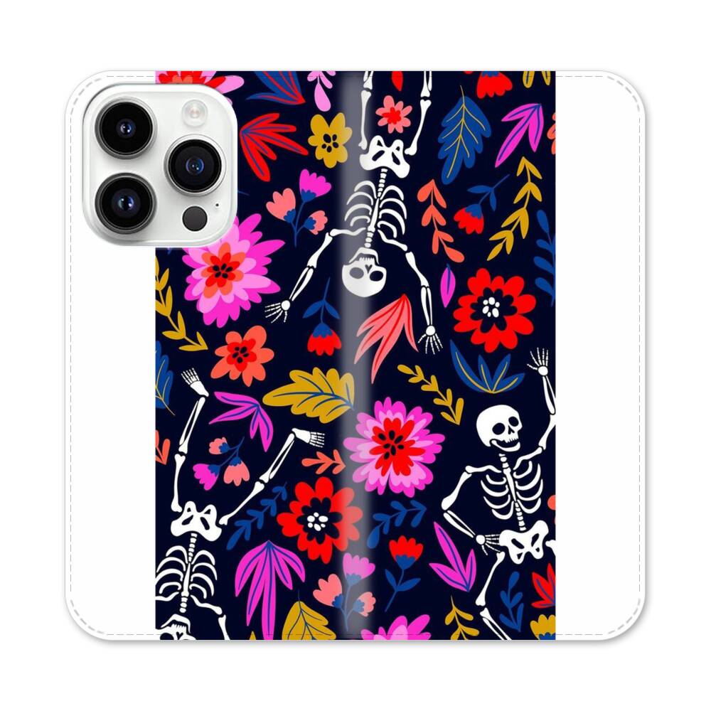 Skelette in der Blumen Apple iPhone 14 Pro Flip Case● Seitlich klappbar