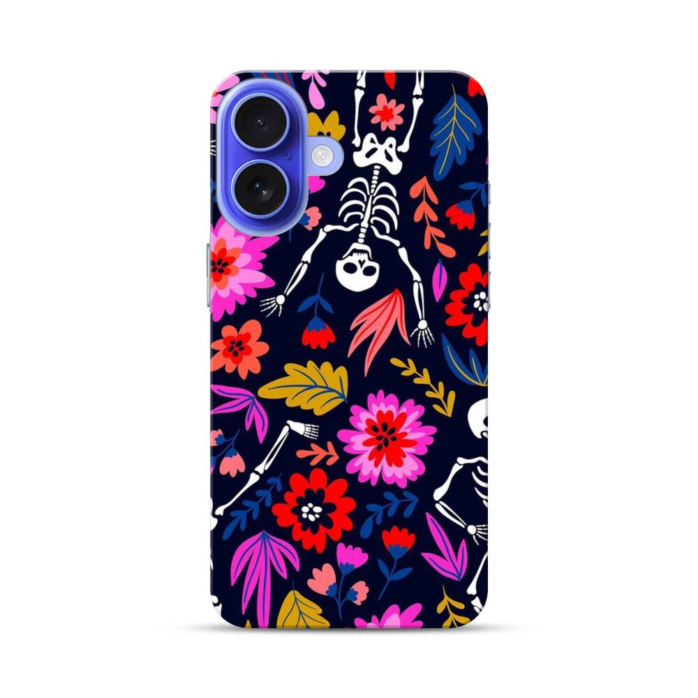 Skelette in der Blumen Apple iPhone 16 Hülle● Rundum bedruckbar