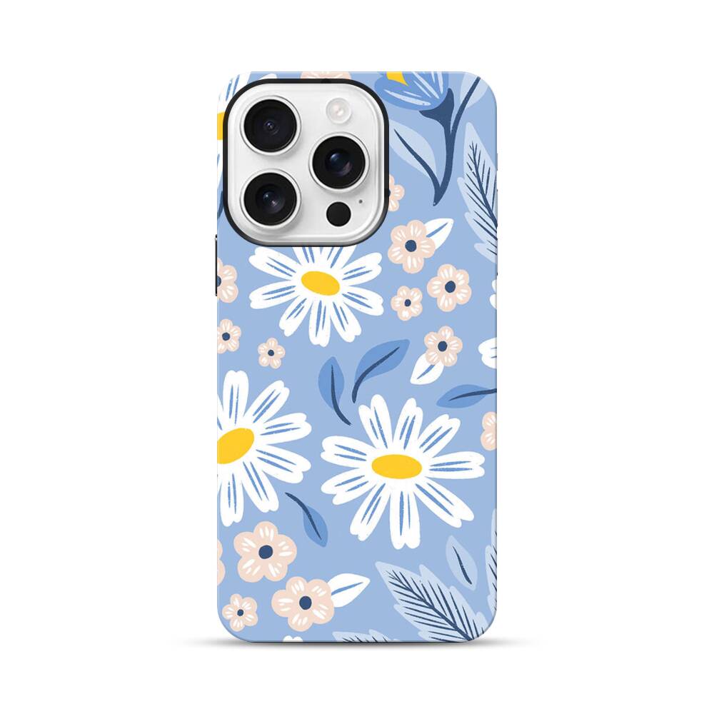 Blaue Gänseblümchen Apple iPhone 16 Pro Hybrid Case● Rundum bedruckbar