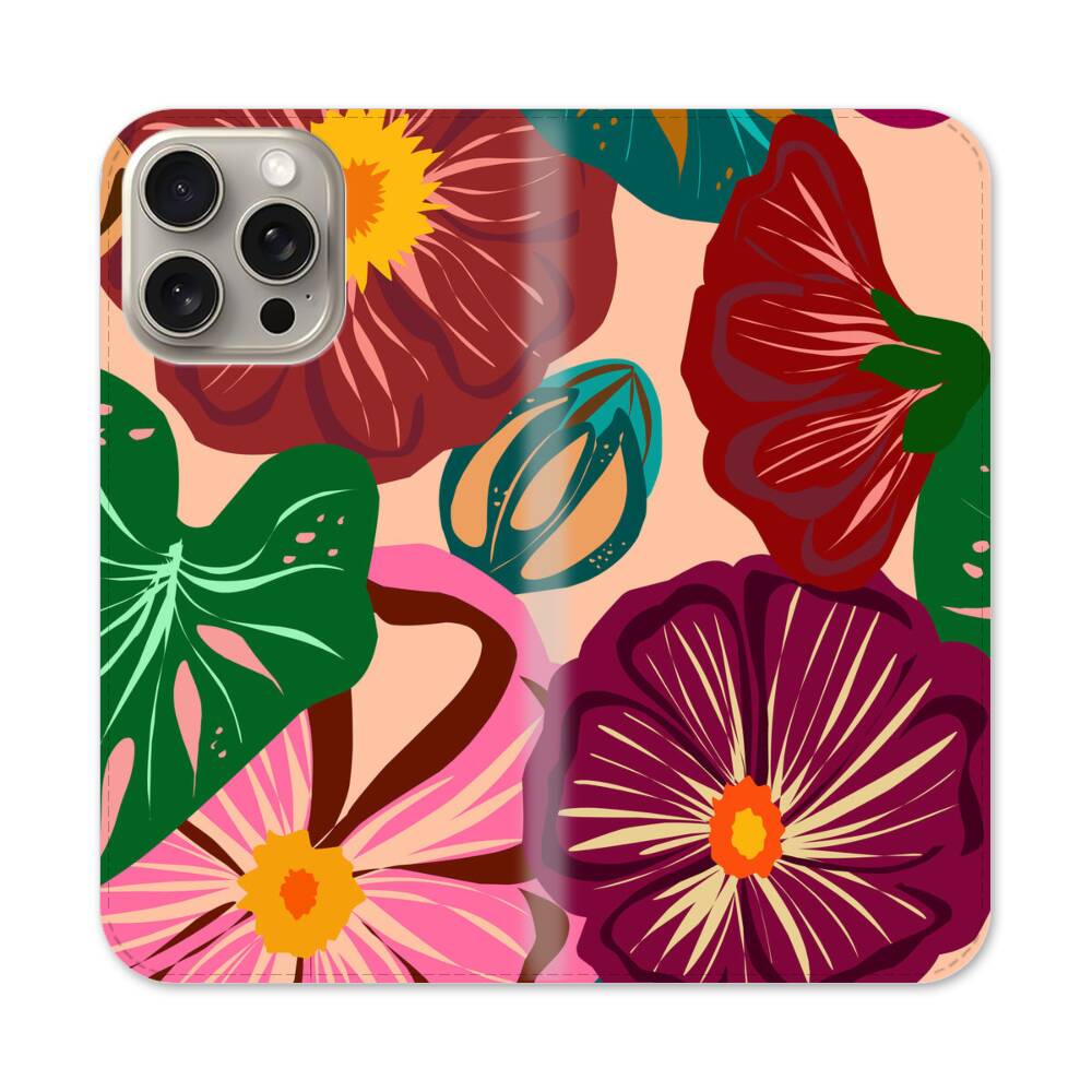 Bunte Mohnblumen Apple iPhone 15 Pro Max Flip Case● Seitlich klappbar