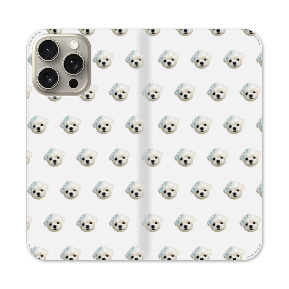 Nahtlose Puppy mit Schleifen Apple iPhone 15 Pro Max Flip Case● Seitlich klappbar