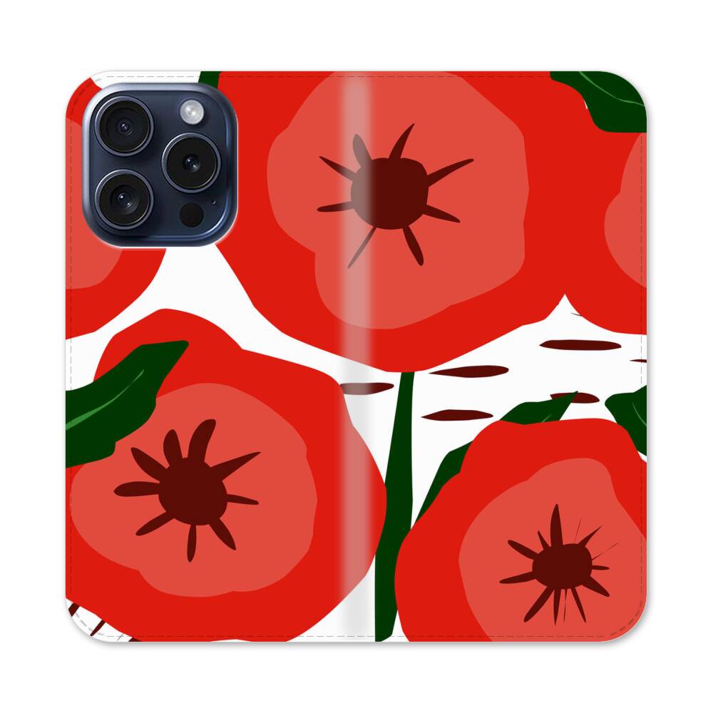 Rote Mohnblumen Apple iPhone 15 Pro Flip Case● Seitlich klappbar