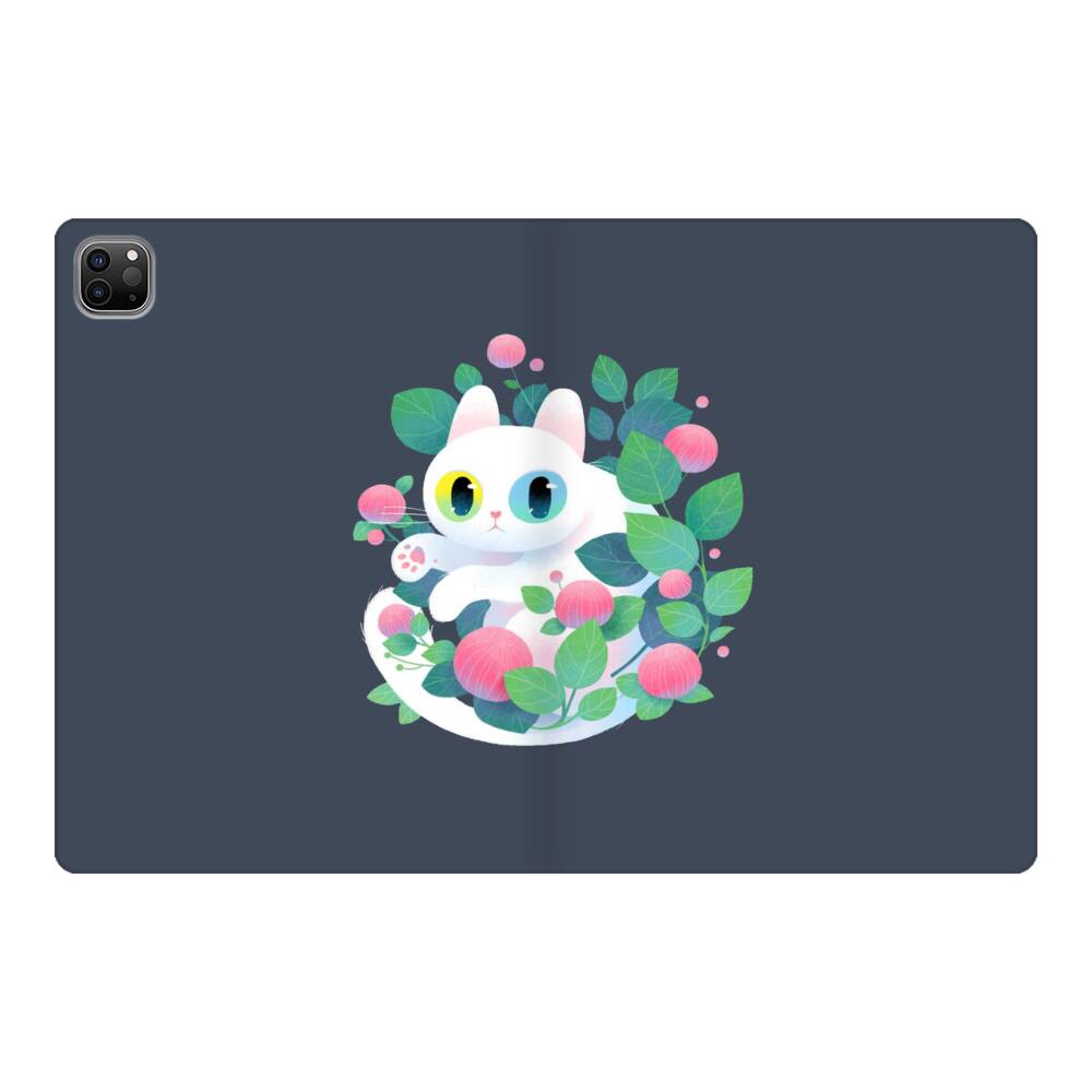 Weiße Katze mit Blumen Apple iPad Pro 11.0 (2020) Flip Case (Smart Folio)● Seitlich klappbar