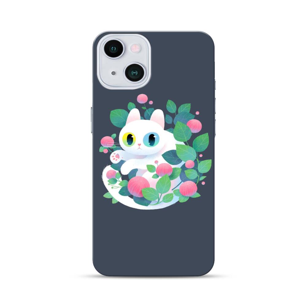 Weiße Katze mit Blumen Apple iPhone 13 Hülle● Rundum bedruckbar