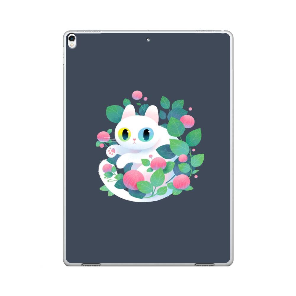 Weiße Katze mit Blumen iPad Pro 12.9 (2017) Hülle● Rundum bedruckbar