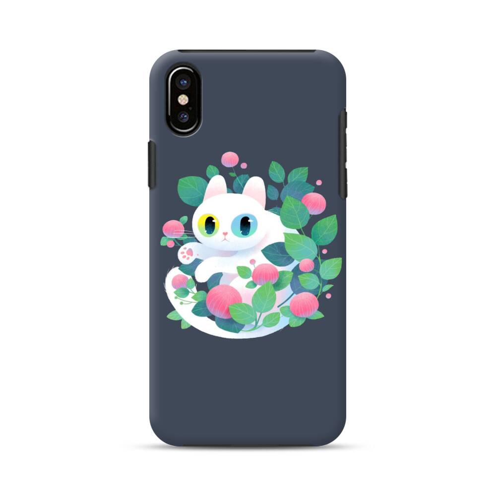 Weiße Katze mit Blumen iPhone XS Max Hybrid Hülle● Rundum bedruckbar