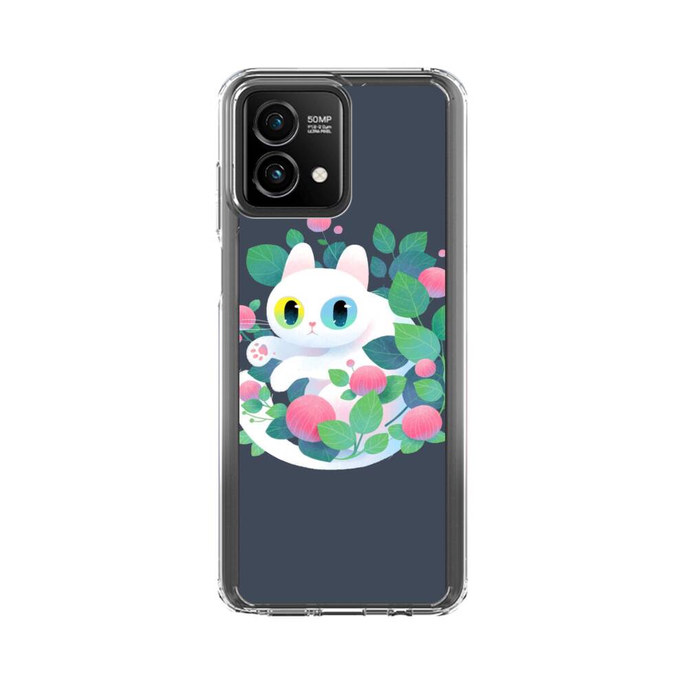 Weiße Katze mit Blumen Motorola Moto G Stylus 5G (2023) Silikon Hülle● Sehr robust & langlebig