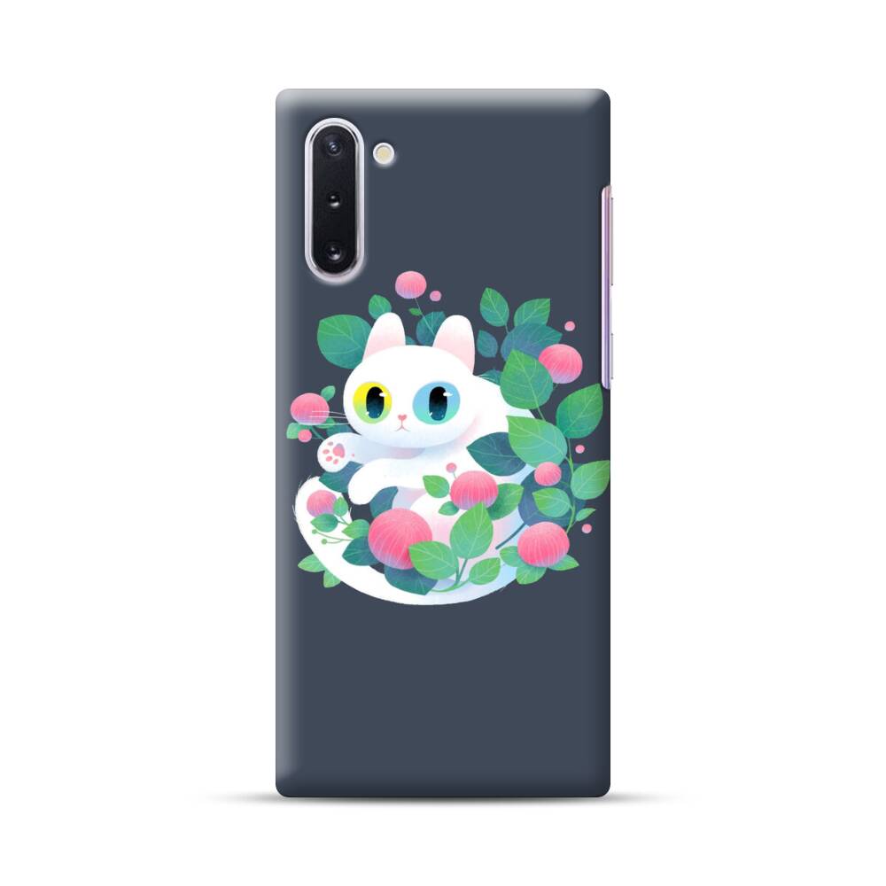 Weiße Katze mit Blumen Samsung Galaxy Note 10 Hülle● Rundum bedruckbar