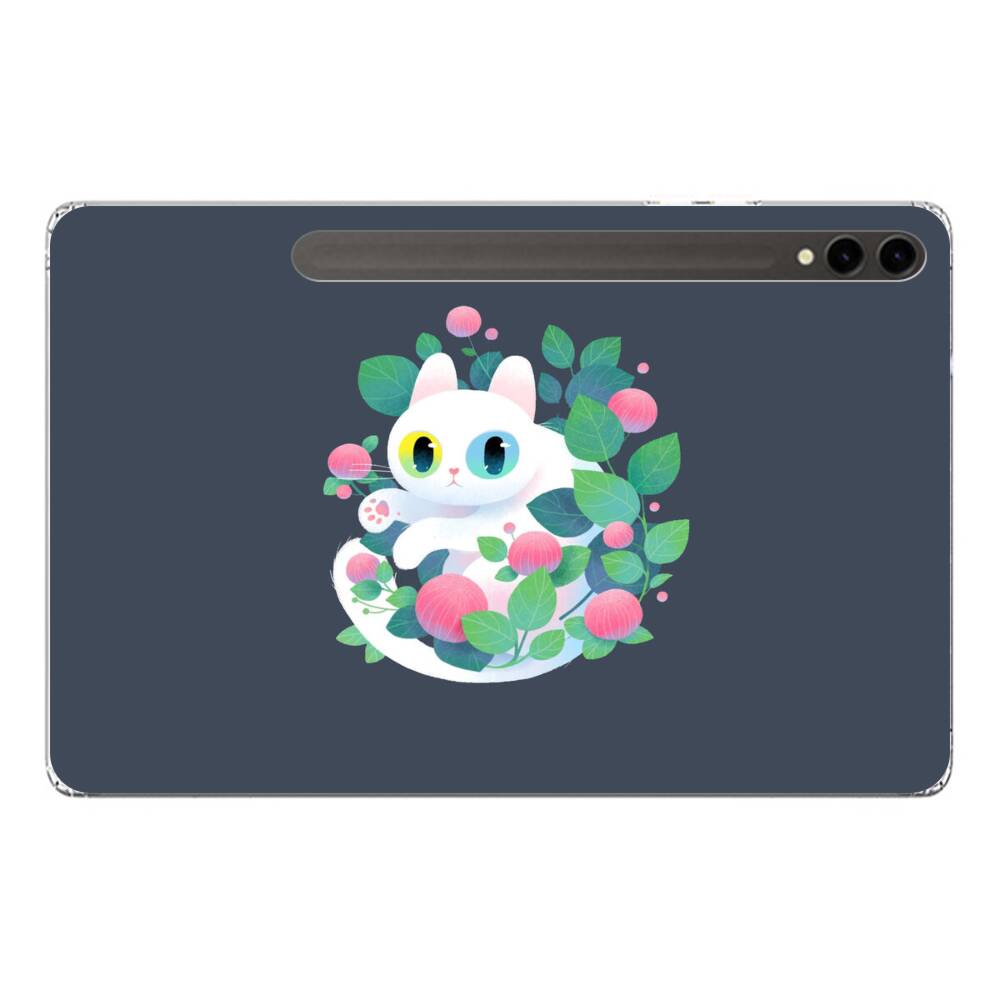 Weiße Katze mit Blumen Samsung Galaxy Tab S9 Plus Silikon Hülle● Sehr robust & langlebig