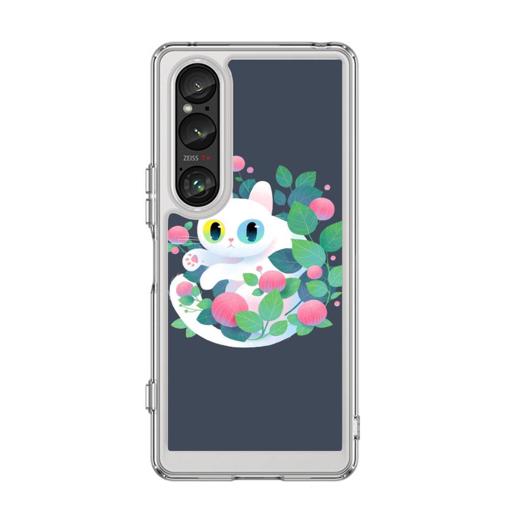 Weiße Katze mit Blumen Sony Xperia 1 VI Silikon Hülle● Sehr robust & langlebig