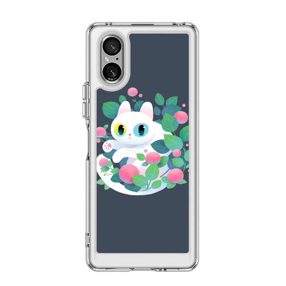 Weiße Katze mit Blumen Sony Xperia 5 V Silikon Hülle● Sehr robust & langlebig