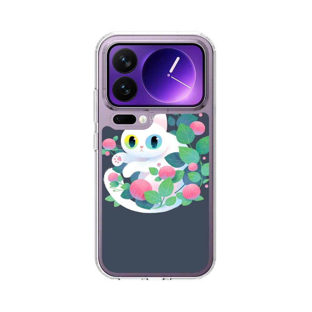 Weiße Katze mit Blumen Xiaomi 17 Pro Silikon Hülle● Sehr robust & langlebig