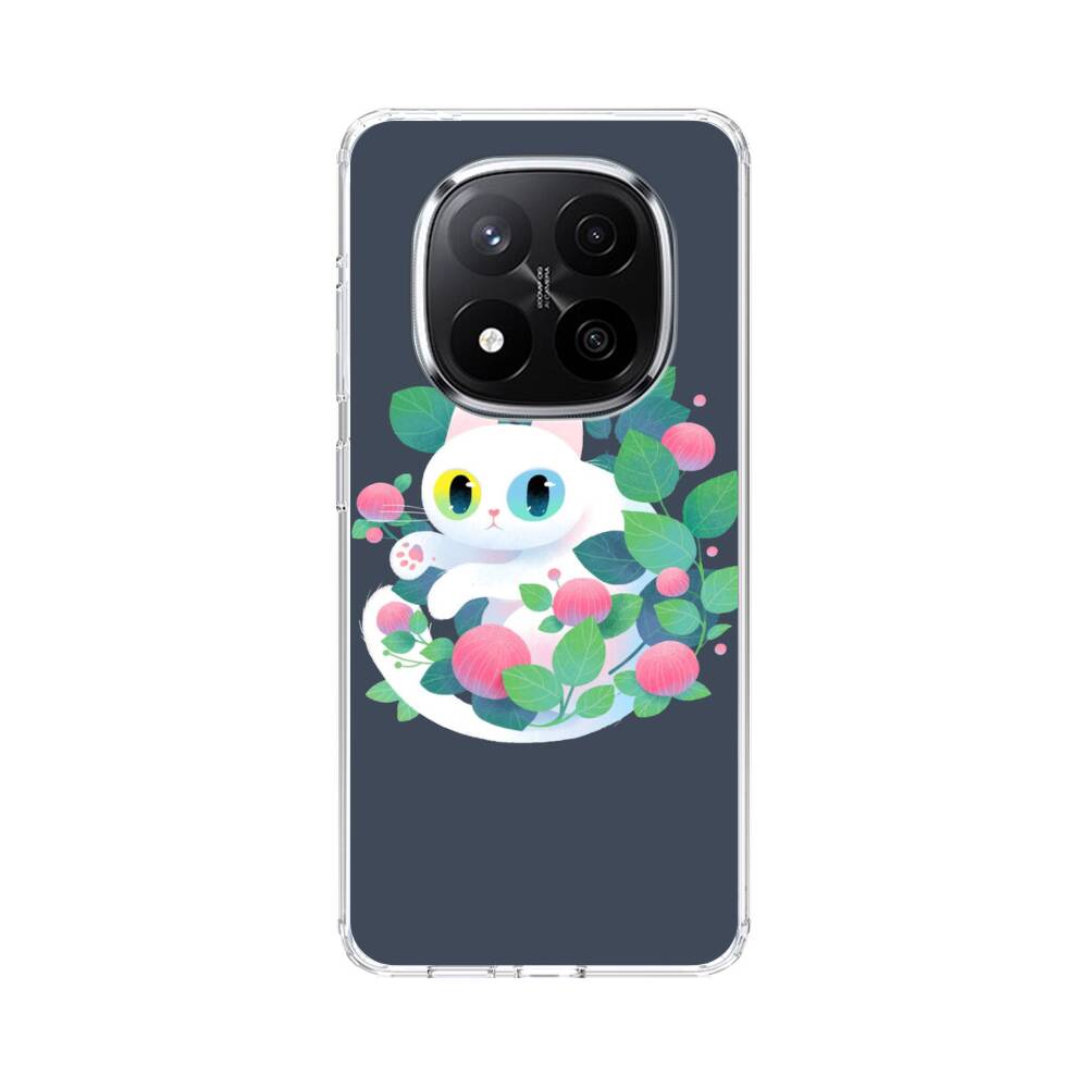 Weiße Katze mit Blumen Xiaomi Redmi Note 14 Pro Plus Silikon Hülle● Sehr robust & langlebig