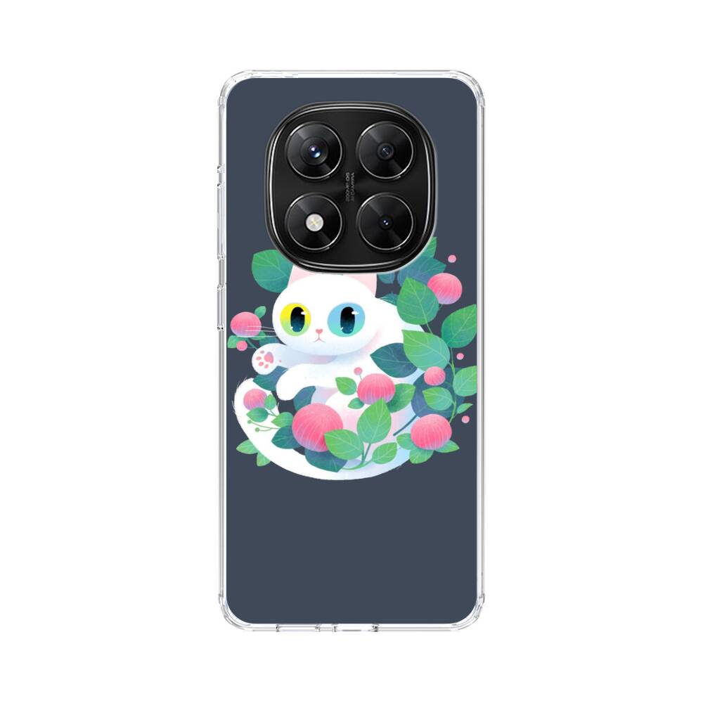 Weiße Katze mit Blumen Xiaomi Redmi Note 14 Pro Silikon Hülle● Sehr robust & langlebig