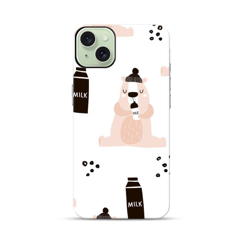 Bär Trinkt Milch Apple iPhone 15 Plus Hybrid Case● Rundum bedruckbar
