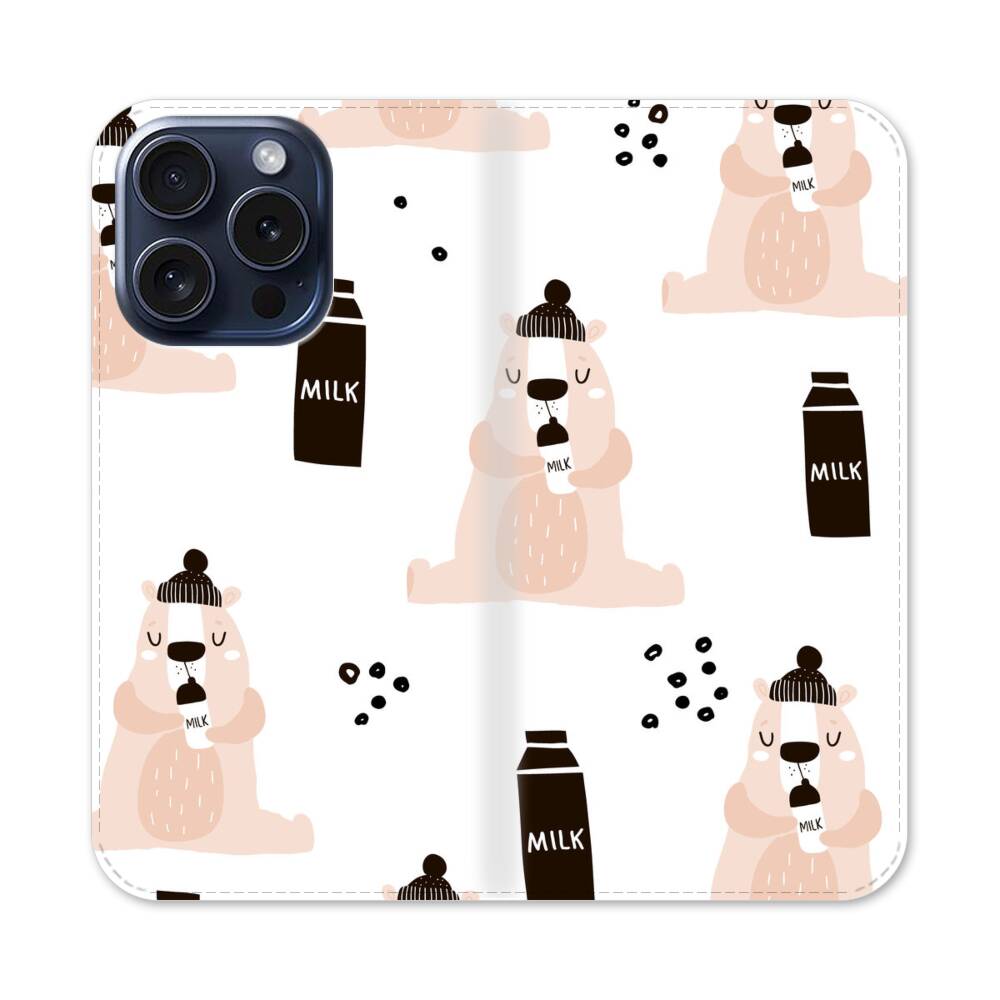 Bär Trinkt Milch Apple iPhone 15 Pro Flip Case● Seitlich klappbar