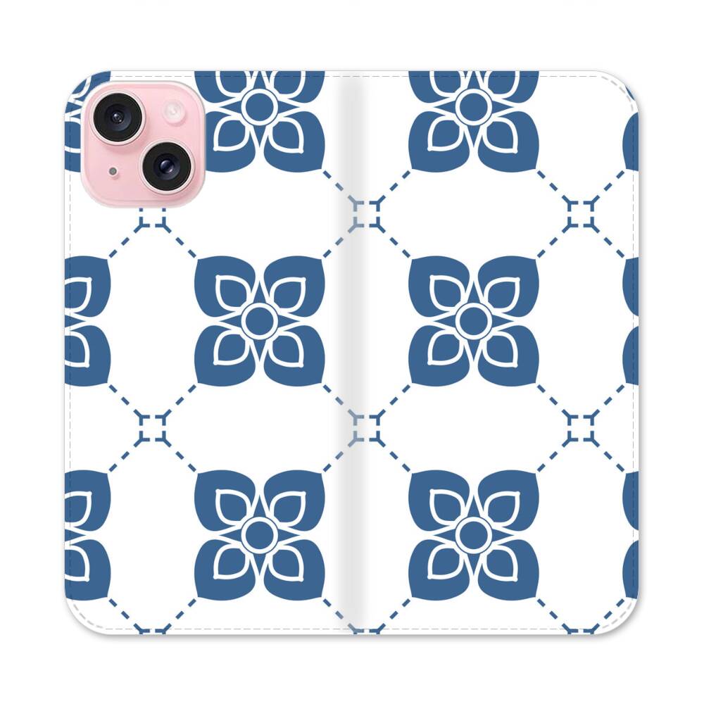 Indigo Blumen Apple iPhone 15 Flip Case● Seitlich klappbar