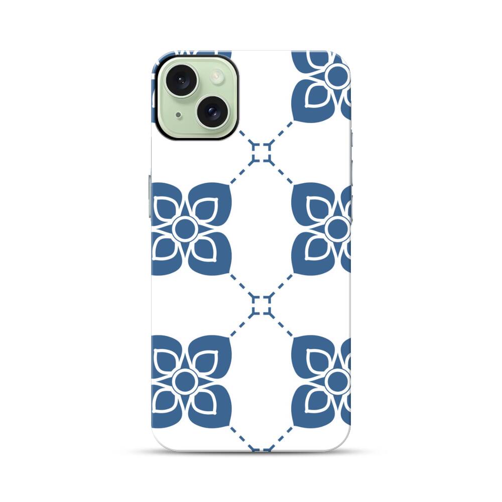 Indigo Blumen Apple iPhone 15 Plus Hybrid Case● Rundum bedruckbar