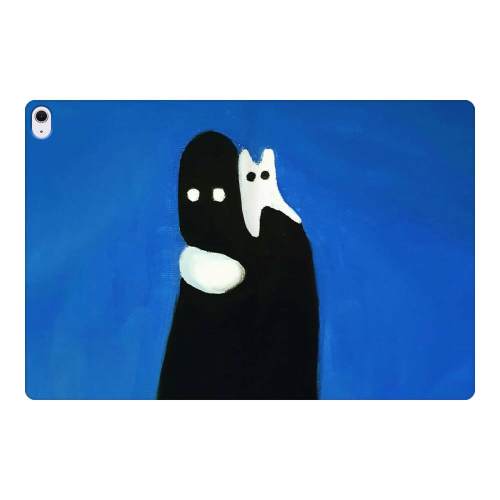 Weiße Katze auf einem schwarzen Mann Apple iPad Air 13 (2025/2024) Flip Case● Seitlich klappbar