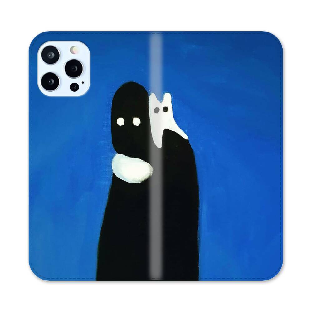 Weiße Katze auf einem schwarzen Mann Apple iPhone 12 Pro Max Flip Case● Seitlich klappbar