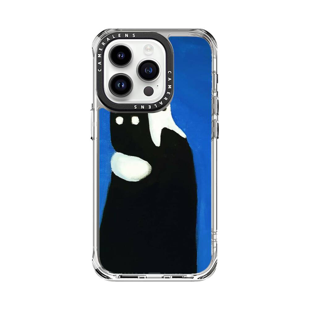 Weiße Katze auf einem schwarzen Mann Apple iPhone 14 Pro Silikon Hülle● Sehr robust & langlebig
