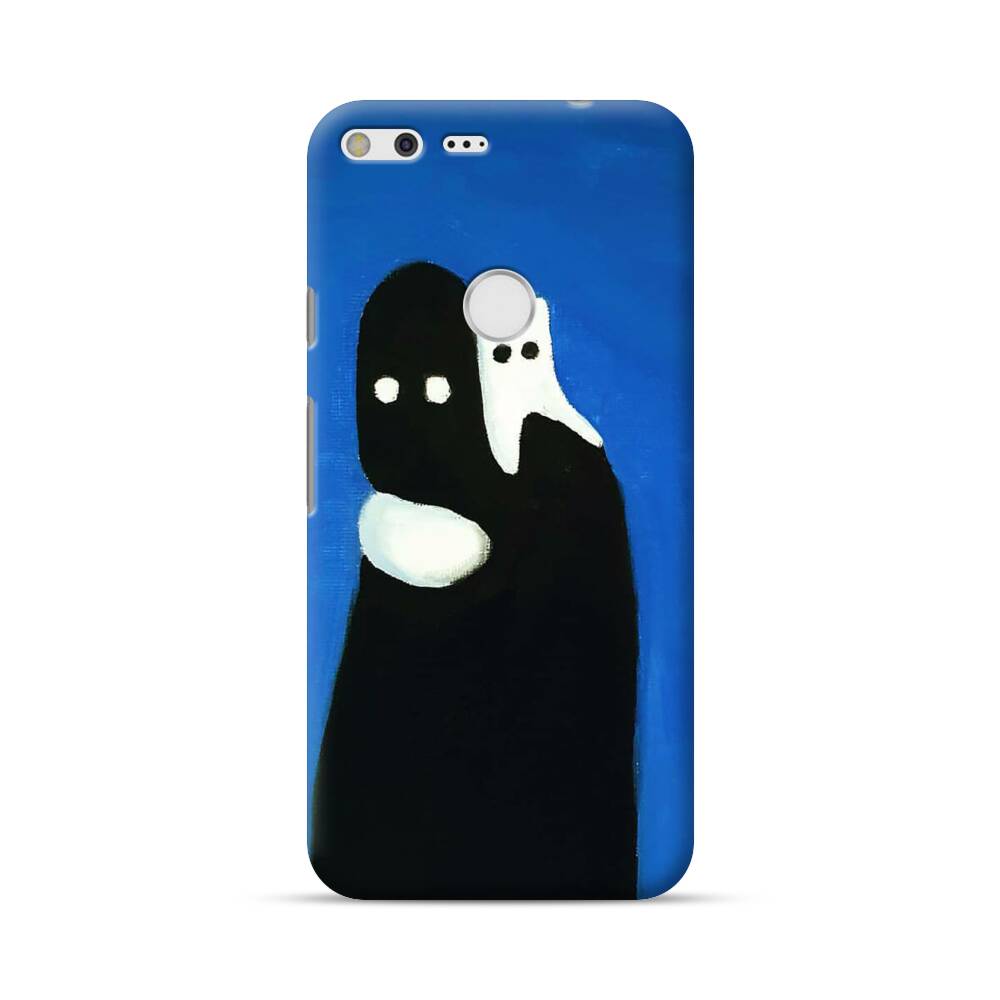 Weiße Katze auf einem schwarzen Mann Google Pixel XL Hülle● Rundum bedruckbar
