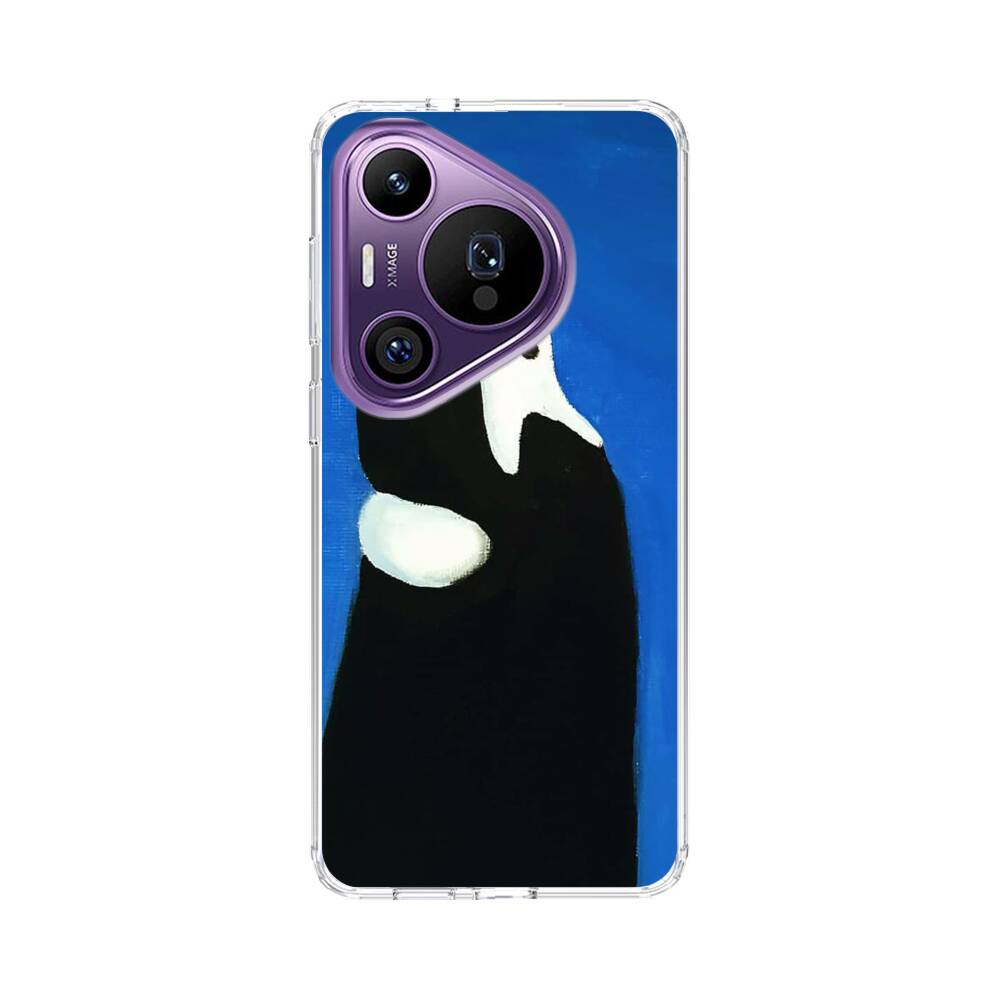 Weiße Katze auf einem schwarzen Mann Huawei Pura 70 Pro Silikon Hülle● Sehr robust & langlebig