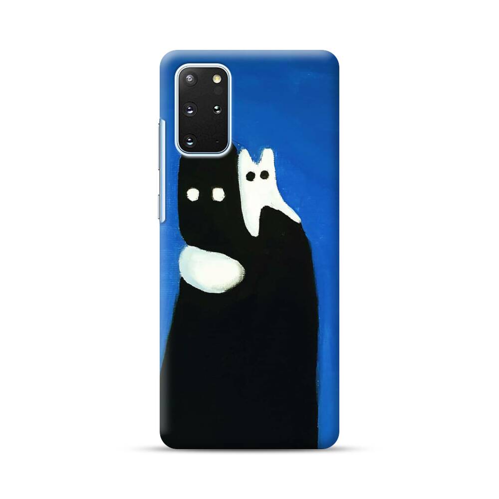 Weiße Katze auf einem schwarzen Mann Samsung Galaxy S20 Plus Hülle● Rundum bedruckbar