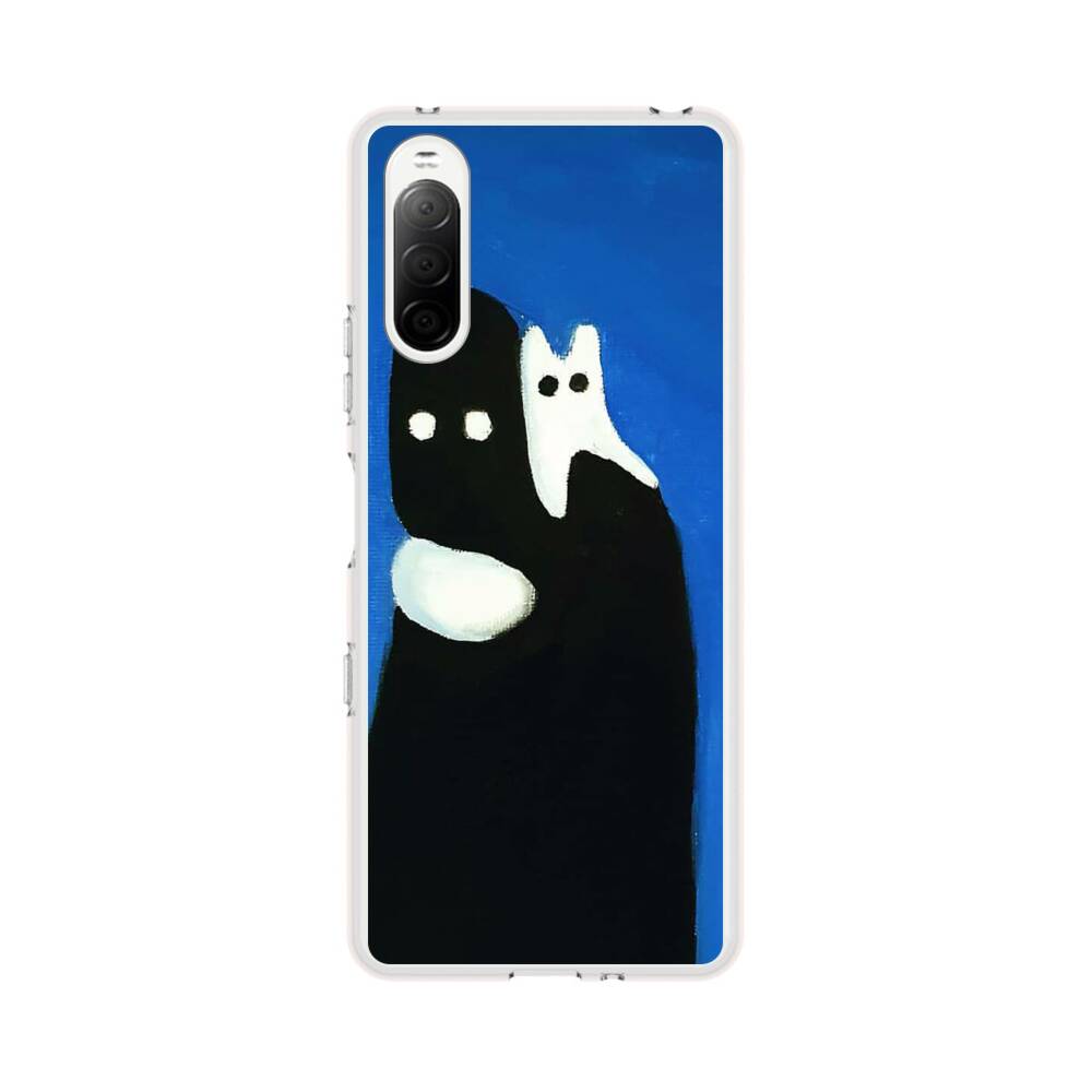 Weiße Katze auf einem schwarzen Mann Sony Xperia 10 III Silikon Hülle● Sehr robust & langlebig
