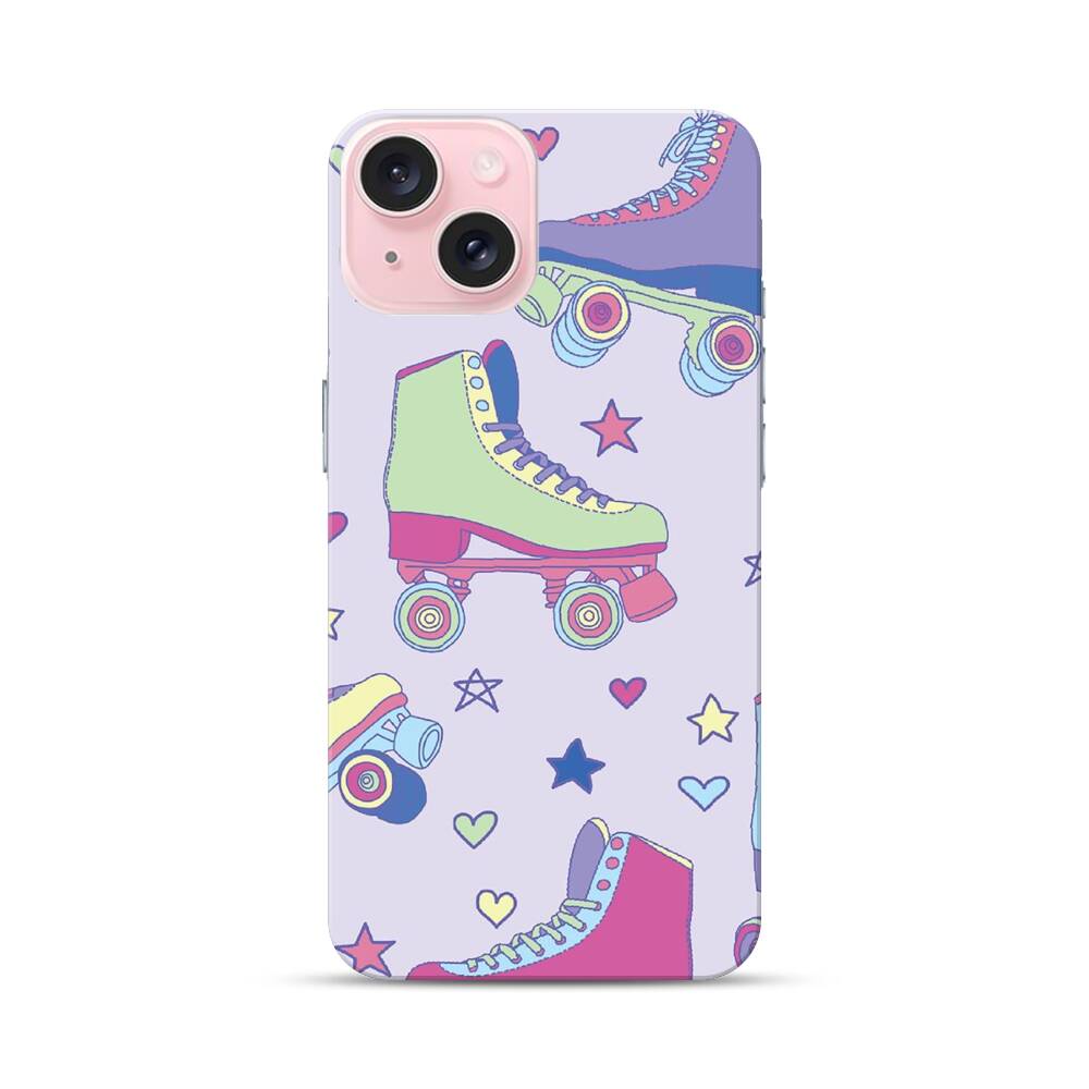 Nahtlose bunte Rollschuhen Apple iPhone 15 Hülle● Rundum bedruckbar